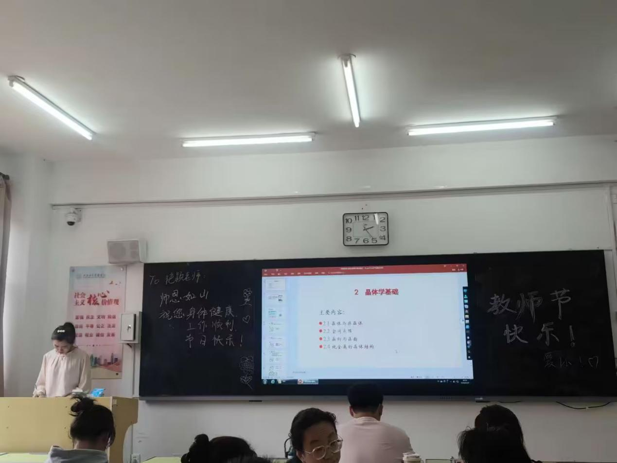 22级材料科学与工程4班团支部在黑板上写下了“师恩如山,祝您身体健康,工作顺利,节日快乐!”