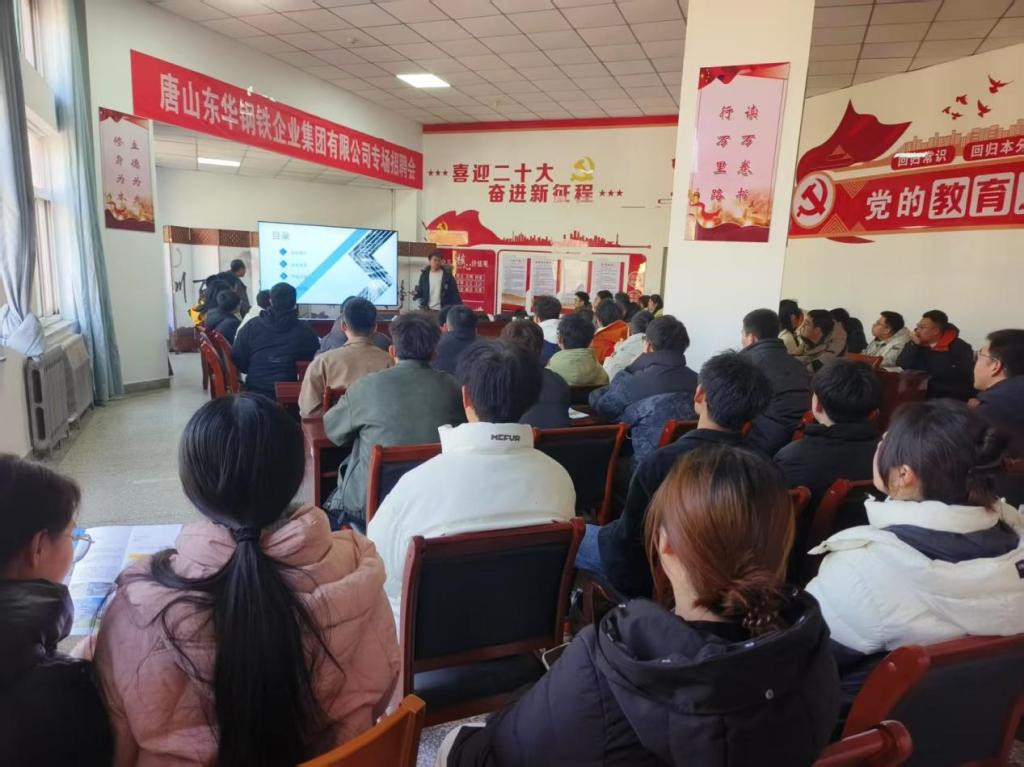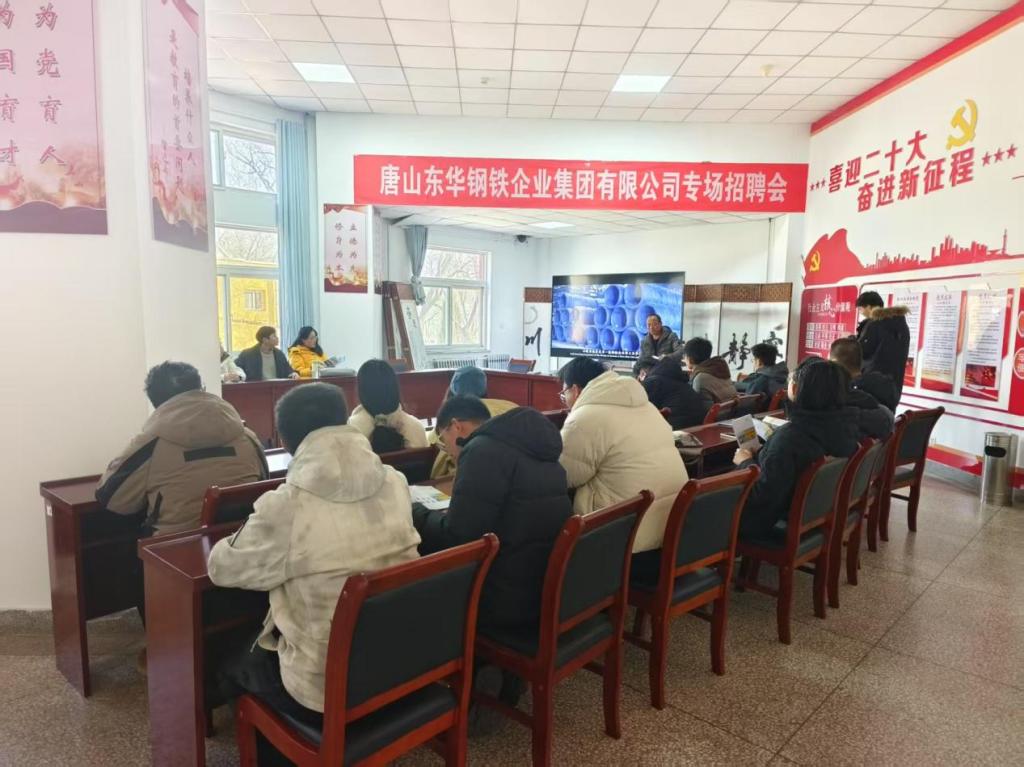 2025年2月24日上午9点,唐山东华钢铁企业集团有限公司在材料科学与工程系212会议室成功举办了专场招聘会。此次招聘会主要面向矿物加工工程、机械设计制造及自动化、材料科学与工程、电气工程及其自动化、计算机科学与技术等专业的学生。招聘会吸引了众多学生参与,现场气氛热烈。