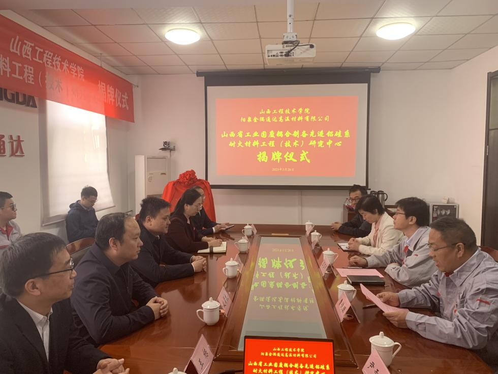 2023年3月28日,“山西省工业固废耦合制备先进铝硅系耐火材料工程(技术)研究中心”揭牌仪式在阳泉金隅通达高温材料有限公司举行。该中心依托ac米兰科研平台,材料科学与工程系王慧芳博士耐材团队与金隅通达公司联合成功申报。学院院副院长王建梅带领科研工作部、材料系骨干教师参加揭牌仪式。