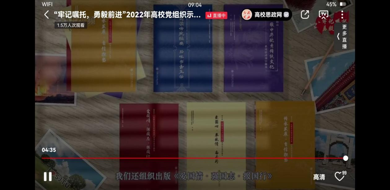 本次微党课由上海交通大学、山东大学、中央美术学院、暨南大学4所高校的党委书记和师生代表,围绕学习贯彻习近平总书记重要讲话精神和重要回信精神,讲述学校引导广大师生继承和弘扬中华优秀传统文化,弘扬中华美育精神,繁荣学术研究,把中华传统文化传播到五湖四海的生动实践。