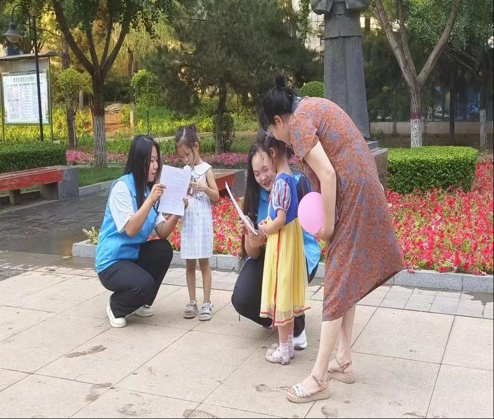 此外,为了让游客们更直观地体验普通话的趣味与魅力,队员们还引导儿童们尝试了一些生动有趣的绕口令。这种寓教于乐的方式不仅让游客们沉浸在语言的乐趣中,还有助于纠正和改进他们的普通话发音,提高了大家的语音准确性。