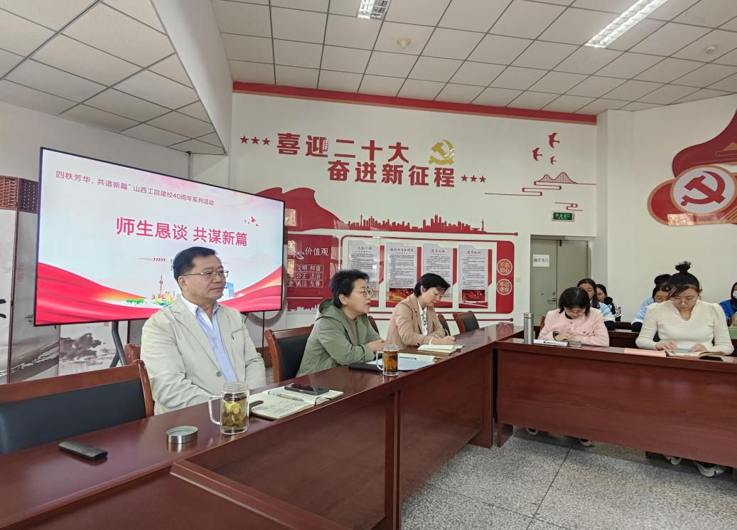 会议伊始,高莹带领师生一同畅忆往昔、畅叙情谊,共同回顾了学院建校40年来取得的辉煌成就:从1984年建校,第一任领导班子带领师生植树造林,改善校园环境;到2002年一桥飞架南北,解决了师生出行难题,加强了学校与各方的联系;到2014年成功升为本科院校,实现了专科到本科办学层次的飞跃;到今天在新一届领导班子的带领下,顺利完成本科教学质量合格评估,带领学院迈上了高质量发展的快车道。学院的发展和取得的成就,是一代代山西工院人矢志不渝、艰苦奋斗的结果,希望大家能够接力奋斗,共绘学院发展新篇章。