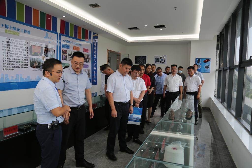 (姜俊兵院长、叶玉刚副院长以及各理事单位代表参观指导新材料创新成果展厅)