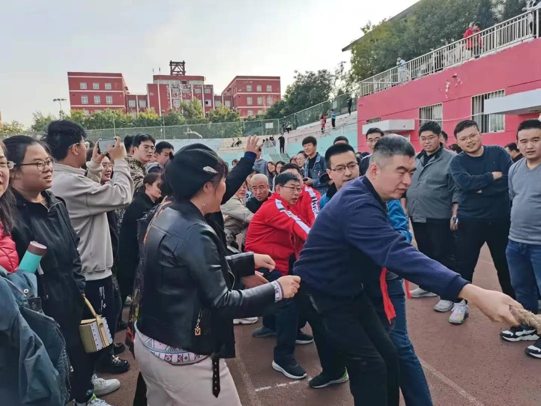 为了丰富教师课余文化生活,引导教师积极参加体育锻炼,增强体质,培养教师的合作精神和拼搏精神,创建和谐、融洽的工作环境,我校于10月25日在东操场举办了拔河比赛。