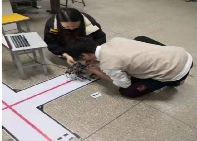 备赛初期,常常纠结细枝末节,始终无法找到突破口。当她将思考好的想法转化为计算机语言与设备通信时,设备却出现异常的现象,差强人意,无法达到完美的效果。面对这一结果,书桌前的背影显得略有孤寂又令人振奋,要强的心理驱使着她要自己寻找解决方案,攻克这一难题。从早到晚,整日趴在电脑桌前,一个词条搜索了一遍又一遍,有时候是柳暗花明,灵光乍现,找到了突破口,在原有冗长的程序上有了新的进展,但更多情况依旧是满头雾水,原地徘徊,得到的结果都不尽人意。或许,在寻找真理的道路上就需要有耐心,一步一个脚印,辗转寻找真理之花,在无尽偌大道路上摸索出属于自己前进的方向。