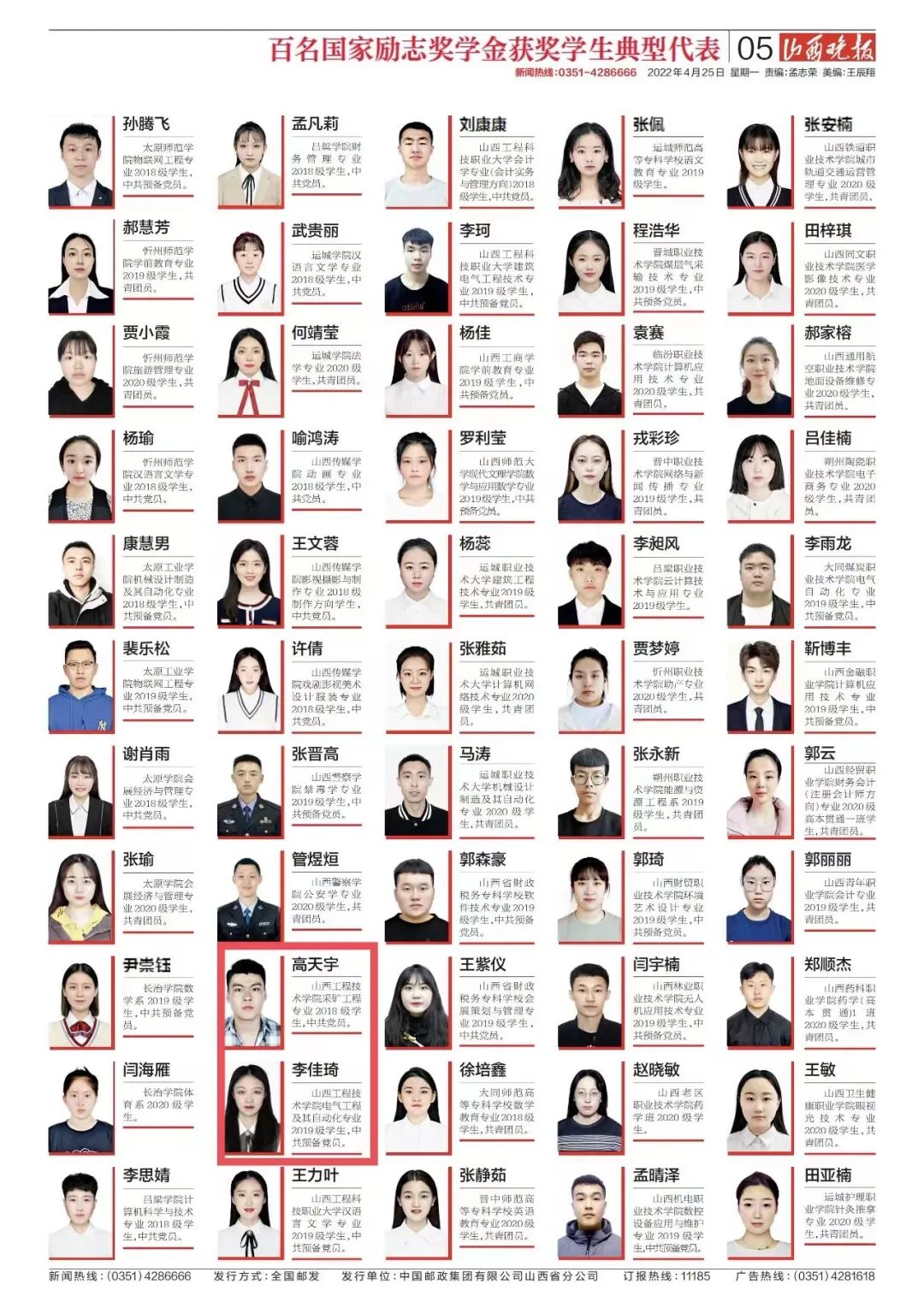 2020—2021学年度,山西共有25851名学生荣获国家励志奖学金,为展现青年学子的榜样力量,充分发挥国家资助育人的导向功能,全省特遴选出100名国家励志奖学金获奖学生典型代表,在山西晚报及全媒体平台报道宣传。