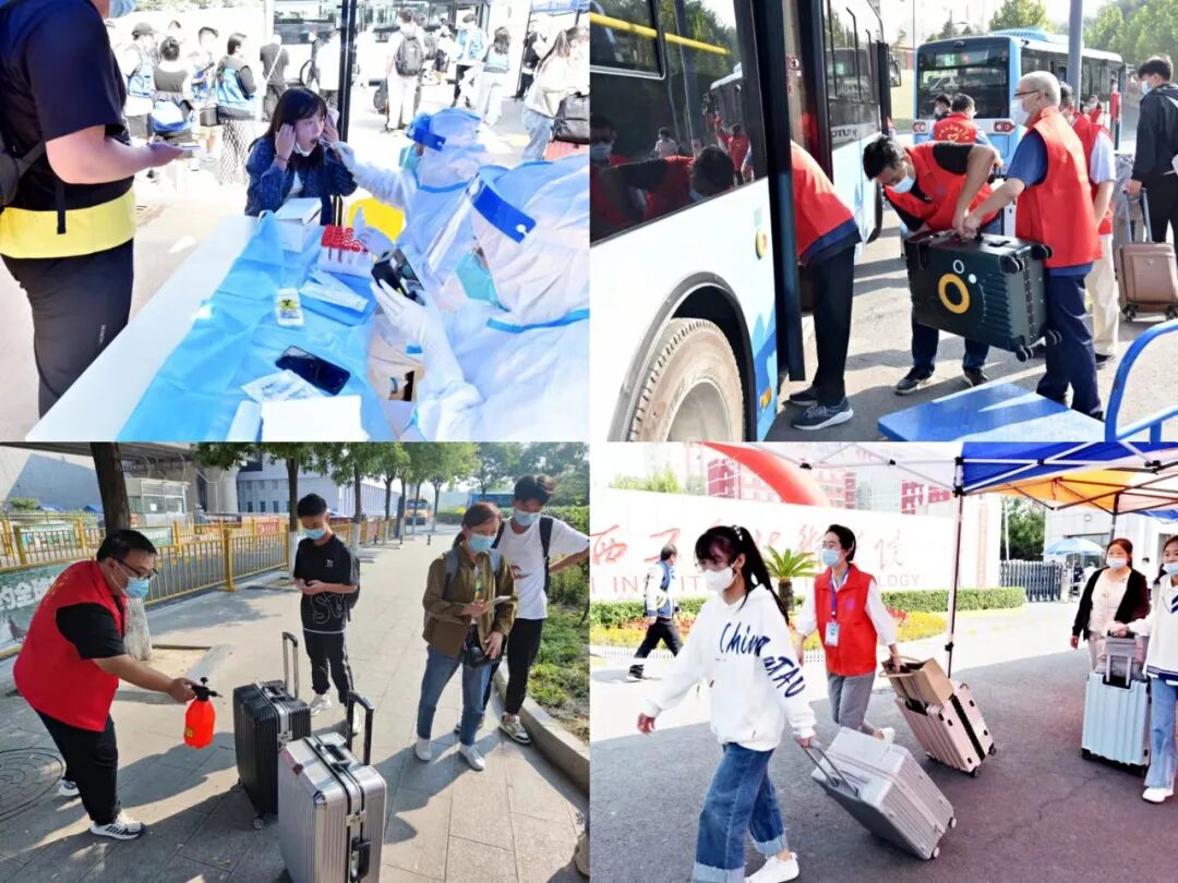 学生工作部和武装保卫部带领志愿者在校内外搭好学生返校“三码”核验通道、应急通道、核酸检测区等,准备好一切迎接新生入校。后勤保障部从疫情物资储备、餐饮保障服务等方面为返校工作做好充足的准备。学生工作部、院团委组织辅导员在阳泉北站、阳泉市综合交通客运枢纽全天候接站,负责新生的出站接站、数据统计、身份核查、搬运行李,引导学生一一上车,隔位就坐,把同学们点对点接回学校。