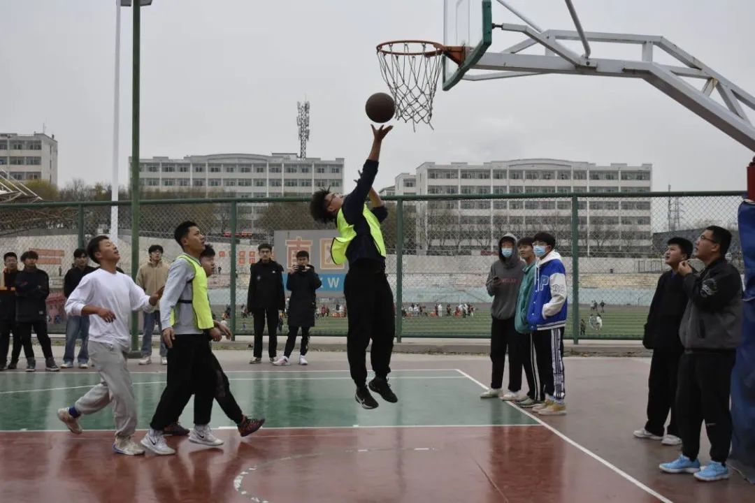 比赛开始前,双方球员先友好的握手致意,各自商讨战术,伴随着随着哨声响起,比赛正式开始。双方队员情绪高涨,全神贯注地投入到激烈的“对战”之中,在球场上你来我往,你争我夺,一轮轮地运球、投球,动作潇洒,双方争夺异常激烈,“战斗”得不可开交。激情四射,口号喊得气势磅礴,各班级的同学们为场上的队员呐喊助威,篮球赛的氛围不断升温