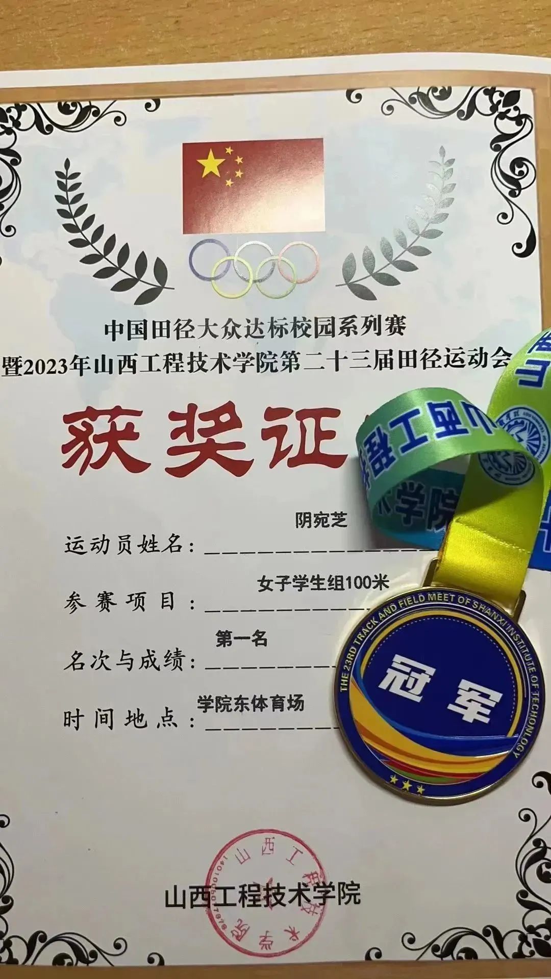 10月13日100米决赛中,我系阴宛芝同学突破重围,成为女子学生组100米决赛的冠军。
