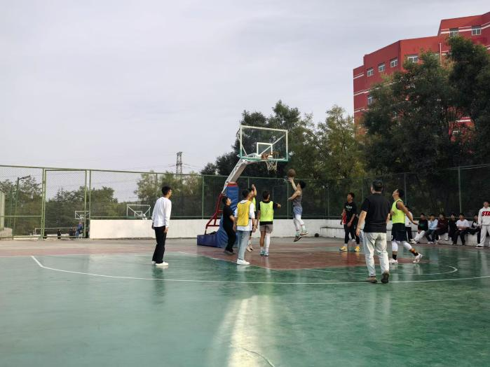 (校友与同学们打篮球)
