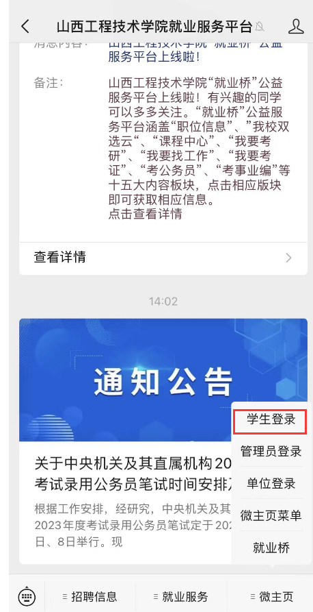 第二步:点击“微主页”---“学生登录”,输入用户名和密码后即可登录