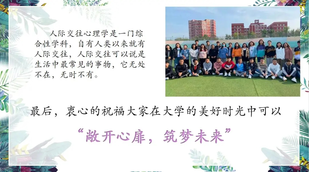 为加强和推进我校育德与育心相结合的心理健康教育工作,提高师生心理健康水平,丰富校园心理文化,地质与环境工程系于2021年5月18日晚7时许在致学楼305举行了以“敞开心扉,筑梦未来”为主题的心理健康视频PPT大赛。