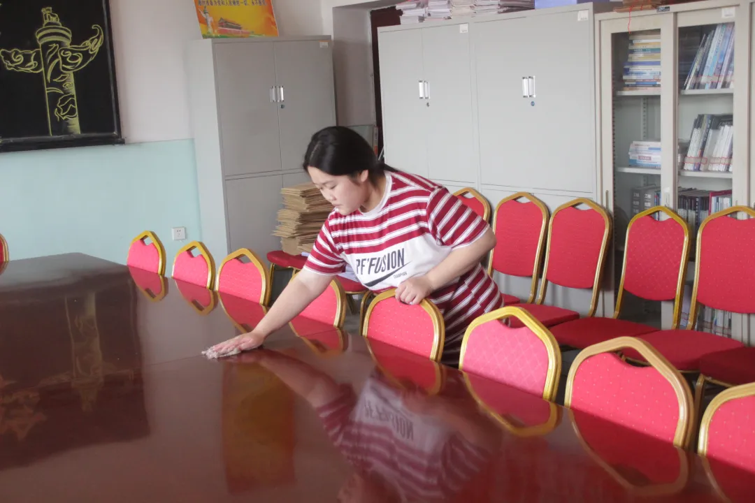 各班级报名参与打扫的同学拿着清扫工具在思源楼集合后,在工作人员的分工下进入指定地点开始打扫。同学们认真仔细的给展示板、玻璃、地面,桌椅和多媒体平台做着清洁,不放过一个角落。不多时,一个干净整洁的环境便出现在了我们面前,在最后的合影留念中结束了本次的打扫活动。