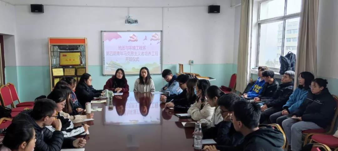 2021年10月20日中午12时,地质与环境工程系第四期青年马克思主义者培养工程开班仪式在思源楼507会议室召开,参加此次开班仪式的主负责人有荆雪婷老师和郭媛老师,以及学生代表卫世航同学。