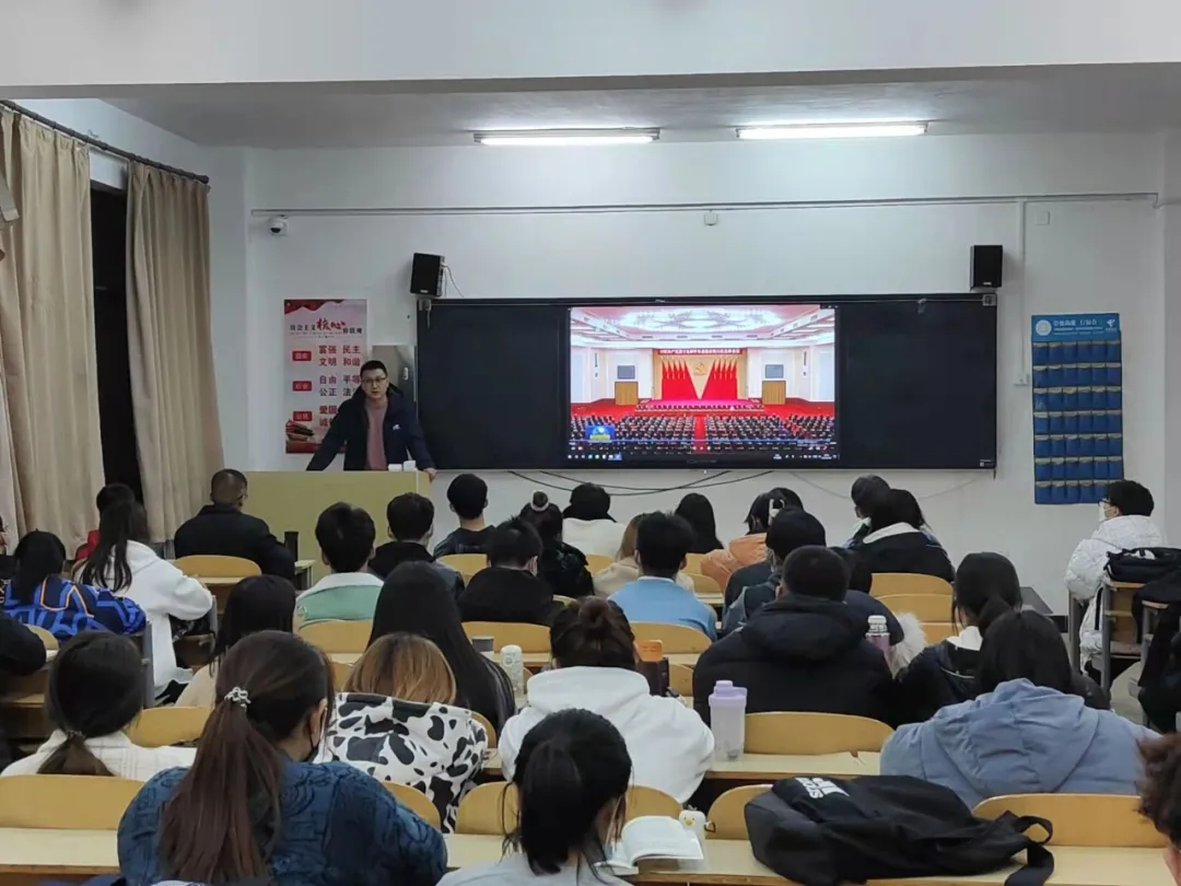 王家臣老师为同学们介绍了两次会议的重要意义,结合《中共中央关于党的百年奋斗重大成就和历史经验的决议》、《关于召开党的第二十次全国代表大会的决议》和《牢记领袖嘱托,扛起时代使命,全方位推动高质量发展,奋力谱写全面建设社会主义现代化国家山西篇章》的报告,让青年同学领悟习近平新时代中国特色社会主义思想的生动实践,激励大家要继续弘扬伟大建党精神,传承红色基因、赓续红色血脉,把每位同学的个人价值实现融入我校迎评促建工作中去,把各支部青年同学紧密团结在一起,加强班级凝聚力,将日常工作扎实做细,为后续各项工作打下坚实基础。