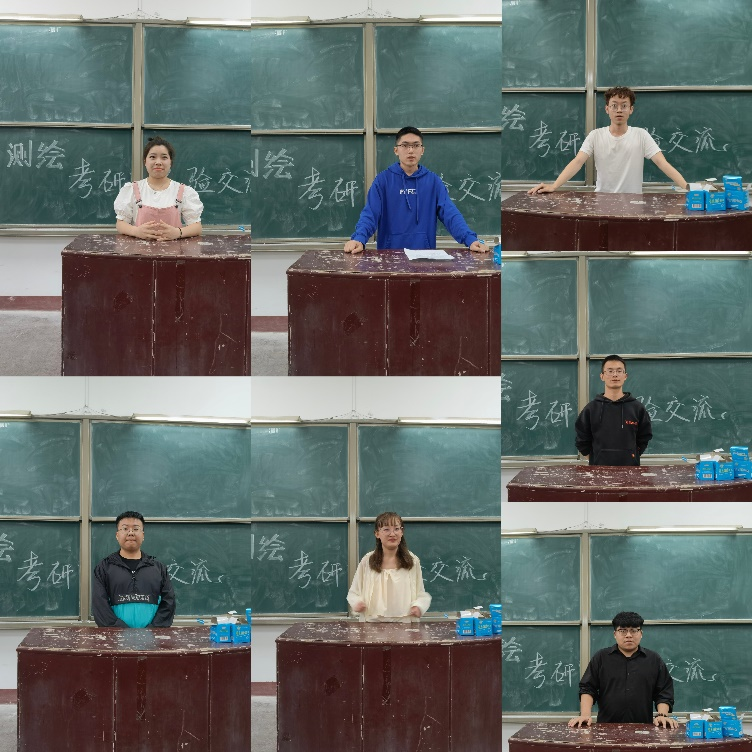 接下来张静宜老师向各位同学依次介绍今年考研成功的同学及其考取的院校,邀请他们做经验分享。首先由19级的狐康琦同学分享自己的经验,她从择校、备考过程中心态的调整以及学习计划等方面分享,建议大家不要好高骛远,选择自己适合的院校,放平心态减少焦虑很重要。19测绘王珺介绍了自己的备考学习计划,前期着重数学英语的复习,后期重视专业课,选择学校要明白自己的诉求,根据自己的实际情况而定。19测绘聂谦雨、张宏伟、张璇、付兆亮、蔡永平分别就自己的择校技巧、备考学习计划的制定、目标的制定以及复试的准备、调剂的技巧做了分享,并且向大家共享了自己的考研资料和推荐的老师及课程,鼓励大家在考研路上坚定信念,勇往直前。接着张静宜老师对各位同学的分享做了总结,并向大家介绍了测绘工程的硕士点有哪些学校可以选择,如何选择适合自己的学校,专业课如何复习。