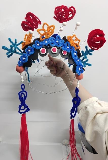 活动在恢宏大气的武术表演中拉开帷幕,随后是选手们的展示环节,决赛共分为三个赛道,分别是“心灵手巧”“梨园世家”“余音袅袅”。在第一赛道中,参赛选手向大家展示其自行制作的戏曲类手工艺作品,武彤瑀同学的手工作品状元帽寓意事业爱情双丰收,激励我们当下要不忘奋斗;霍逸飞同学所做的是戏曲盔头中的冠,俗称戏帽,随戏剧发展而生,同戏曲演员的戏装相协调,可以丰富表现戏剧人物的形象特点。第一赛道以创意手工的形式,使各位同学走进璀璨梨园,共赏满园春色,让传统戏剧焕发出新的光彩。在第二赛道中,各位选手结合自身经历、地域文化向大家讲述了戏曲背后的故事及历史。其中,白峻毓、安阳等同学通过讲述“赵氏孤儿”“霸王别姬”等耳熟能详的故事,带领同学们走进戏曲,并灵活利用多种道具辅助讲解,让在座的同学们对戏曲有了更为深厚的了解。