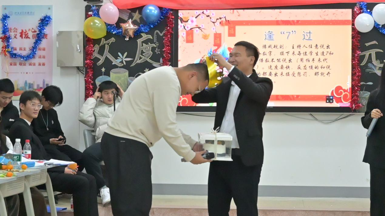 此外,为了增加喜庆的气氛,活动中穿插了逢“7”过和击鼓传花两个游戏,在做惩罚和奖励的过程中,师生们喜形于色,笑声不断,营造欢乐氛围。
