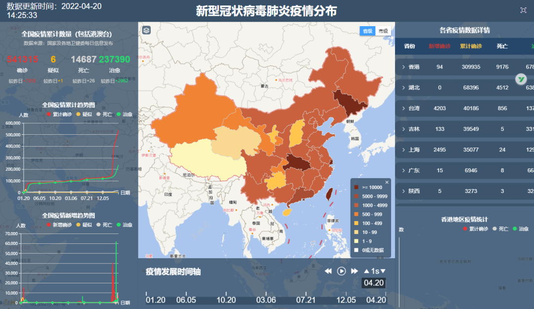 天地图网站上上线的全国新型冠状病毒肺炎疫情分布,数据更新时间为2022年4月20号。