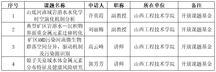 地球科学与工程系四名教师获山西省溶矿区地下水污染防控与修复技术创新中心开放课题资助