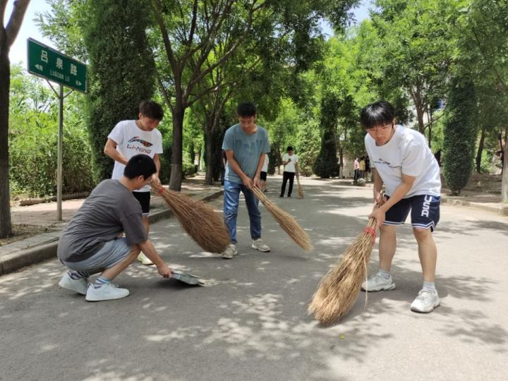 为美化校园环境,进⼀步弘扬乐于奉献的志愿者精神,构建⽂明和谐的校园环境,地球科学与工程系于2022年6月4日12时许在学校九区开展志愿者打扫活动。