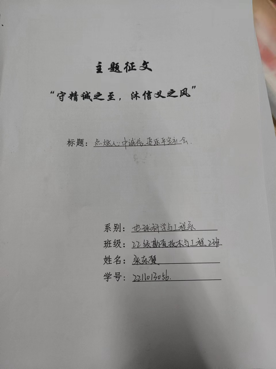为深入学习贯彻习近平新时代中国特色社会主义思想,落实党的二十大精神,培养学生的诚信意识,创造良好的校园文化氛围,使学生成为有理想、敢担当、能吃苦、肯奋斗的新时代好青年。大数据与智能工程系联合地球科学与工程系特以“守精诚之至,沐信义之风”为主题开展此次征文活动。