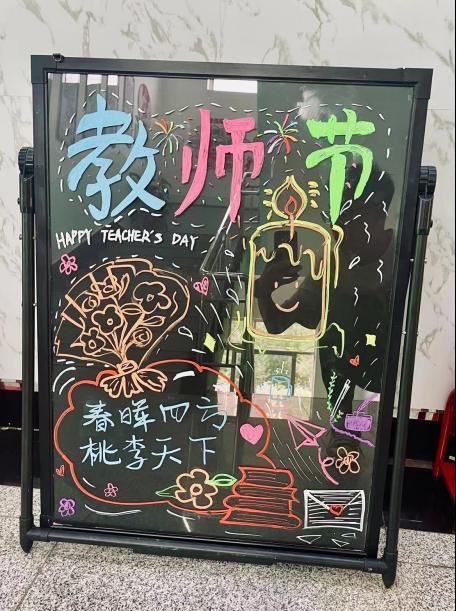 同学们以自己的方式表达对老师的情谊。路上遇到老师后的一声“老师,教师节快乐,您辛苦了!”;上课前简单的“诗朗诵”和带有祝福“歌曲演唱”,饱含着同学们的心意与祝福;帮老师打扫办公室卫生、整理资料,为老师提供干净舒适的工作环境;绘制精美的节日板报,营造浓郁的节日氛围,也让老师更直观的感受到同学们的心意。一方书桌,三尺讲台,教书育人,四季不歇,感谢您提灯领路,育梦成光。