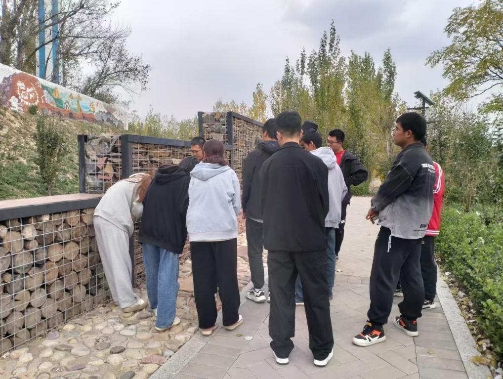 由地学科普社讲解人员带领同学们参观地质文化园。首先来到是䗴化石广场李四光先生雕塑前,同学们在认真听取了讲解员对李四光先生的介绍后,纷纷对李四光先生充满敬意,特别是对李四光先生的爱国精神、求实精神、育人精神、严谨精神、奉献精神、创新精神的敬佩,李四光精神不仅是地质学界的宝贵财富,也是全社会学习的榜样,激励着一代又一代的科技工作者为国家的科技进步和现代化建设贡献力量;接着又带领同学们感受地球的亿年演变以及一些矿物的认识,在此过程中同学们积极主动发问问题,讲解员一一耐心解答;最后带领同学们参观了园内的化石墙,带领同学们领略化石风采,同学们驻足观赏对化石产生了浓厚的兴趣。他们认真听取讲解员的介绍,不时地交流讨论,对地质学的博大精深以及李四光精神有了更直观和深入的了解。