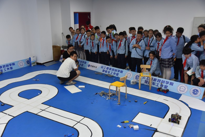 下站小学师生与家长代表在学院志愿者的带领下参观了七大科普教育基地,近距离参观采煤机、掘进机、液压支架等煤矿设备,感受着太行精神与工匠精神相结合的智慧矿井;参观了以“园林式景观与科普教育相结合”、“地质标本和地理知识相结合”为特色的地质文化科普基地;在山工智泉机器人科普基地中,小学生们被无人机、航模、足式机器人、无人车、水中机器人、3D打印等等创新科技作品深深吸引,无不发出惊叹之声……