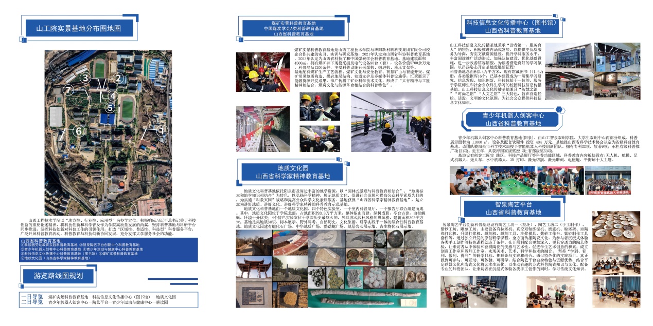 上述5家科普教育基地是学院继“煤矿实景科普教育基地”和“山工智泉机器人创新实践科普基地”经山西省科技厅认定获批“山西省科普基地”、“地质文化科普基地”经山西省科协授予“山西省科学家精神教育基地”之后,学院科普基地建设的再一次突破,学院社会服务能力再上台阶。