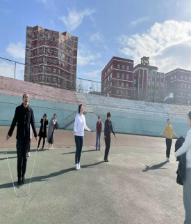 本次活动包括踢毽子、跳绳两项比赛。随着裁判员的一声令下,活动正式开始,赛场上女教师们个个精神抖擞,轻装上阵,将各自的技巧发挥的淋漓尽致。我系男教师也来到比赛,为各位参赛老师做好后勤服务。比赛现场加油声此起彼伏,气氛活跃,精彩不断。