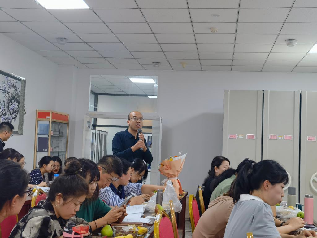 在座谈交流环节,教师们踊跃发言、互相交流。翟晓婧等青年教师与大家分享自己的学习经历与家乡的风土人情;潘俊先等老教师结合自己的工作经历谈教育初心和教育教学的体会,同时对专业发展、师资队伍建设等方面提出意见和建议;光晓赟等留学教师介绍了海外的学习工作经历和见闻;参加国内访学归来的范文婷老师和大家分享了武汉大学访学中在教学、科研等方面的所见所感、所思所悟。大家推心置腹,畅所欲言,气氛融洽。