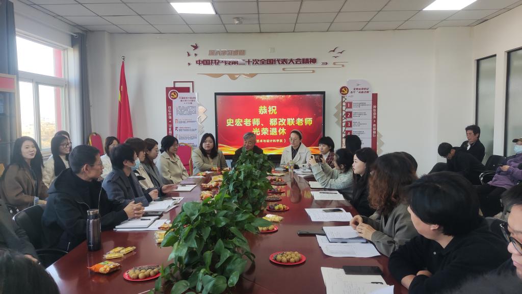 星河横流,岁月如歌,漫漫长路,倏忽而过,历尽风雨沧桑,芬芳九州桃李。2023年11月6日下午系例会结束后,艺术与设计科学系举行了温馨难忘的座谈会,欢送史宏、郗改联两位老师光荣退休。座谈会由系党总支书记秦晓艳主持,系全体教师参加。