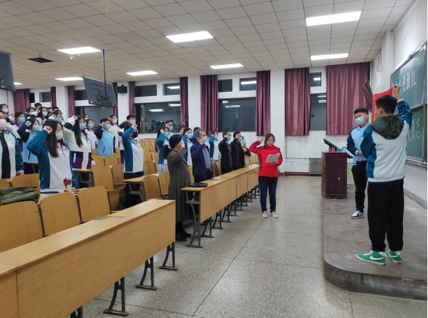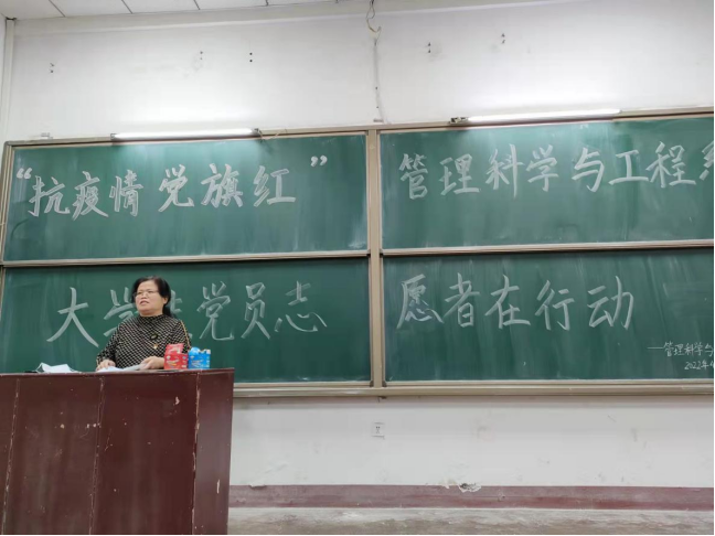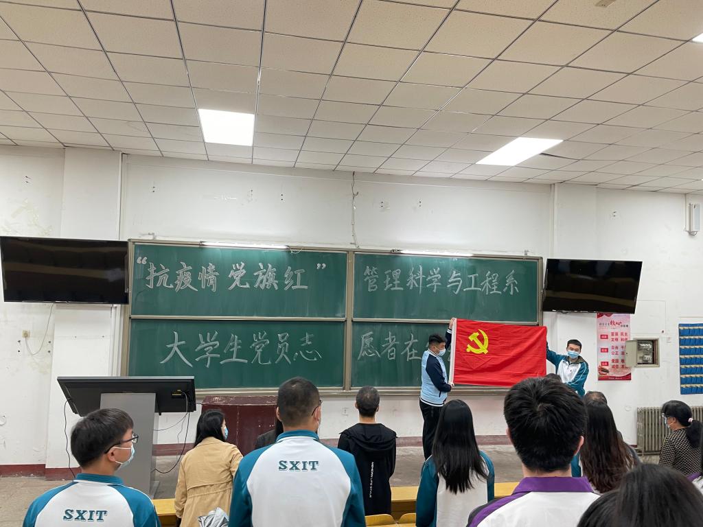 一个党员就是一面旗帜,一个支部就是一座堡垒。根据党组函〔2022〕28号《关于在当前疫情防控工作中充分发挥基层党组织战斗堡垒作用和党员先锋模范作用的通知》,管理科学与工程系76名学生党员于2022年4月11日晚在致学楼105,举行了“抗疫情,党旗红大学生党员志愿者在行动”志愿者服务队启动仪式。