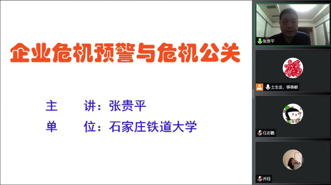 2022年12月9日下午16:30,我系通过线上腾讯会议形式开展关于“企业危机预警与危机公关”主题讲座。此次讲座由管理科学与工程系主任张文秀教授主持,特邀石家庄铁道大学张贵平教师主讲,系全体教师参加了此次讲座。