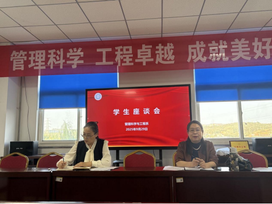 为深入了解本学期教学运行情况,倾听学生对教学工作的意见与建议,进一步提升教育教学质量,管理科学于工程系于2025年9月29日在思贤楼411会议室召开了教学质量提升学生座谈会。来自不同年级的学生代表与系主任张文秀教授、副主任胡新萍教授齐聚一堂,进行了坦诚而深入的交流。