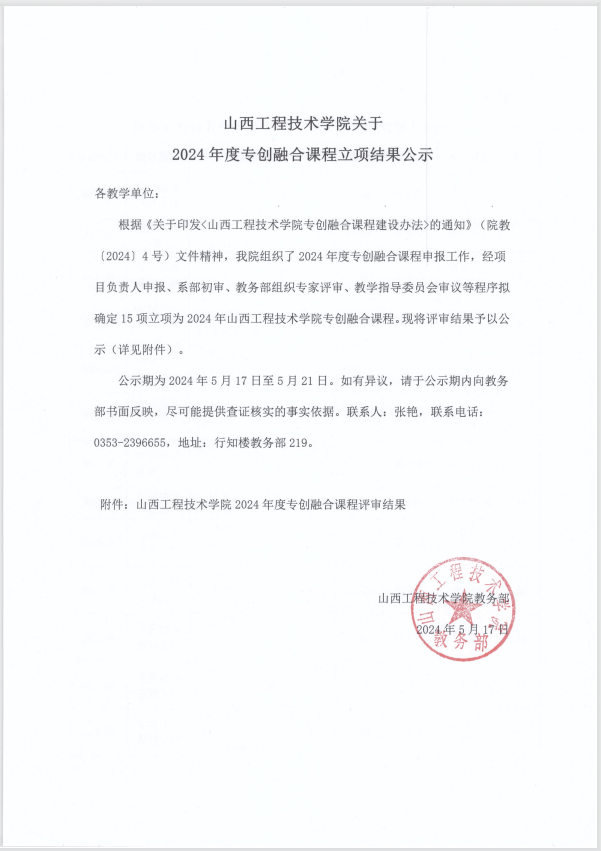 《ac米兰官方网站关于2024年度专创融合课程立项结果公示》