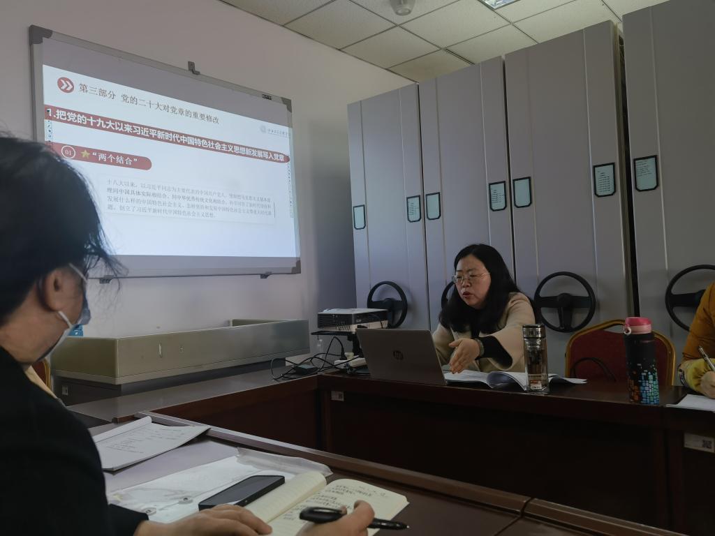 此次宣讲以党的二十大通过的《中国共产党章程(修正案)》修改的主要内容为主题。郭芳从《中国共产党章程》(以下简称“党章”)的定位及功能、为什么要修改党章、历次党的全国代表大会对党章的修改、党的二十大对党章的重要修改等四部分进行了全面宣讲和深入解读。宣讲报告主题鲜明、内容丰富,解读精准透彻,具有很强的理论性、指导性。