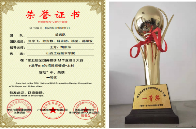 在第五届全国高校BIM毕业设计大赛上,我系16级工管杨莹、郝耀双,16级造价耿吉静同学组成的团队“望远队”,在王芳老师和胡新萍老师的指导下,参加了“F模块—基于BIM 的招投标管理”毕业设计作品大赛,ac米兰代表队的“阳泉某工务段办公楼基于BIM的招投标”作品在全国F模块的83支参赛队中成绩排名第3,并荣获全国BIM毕业设计作品F模块一等奖的好成绩。这是我系学生在BIM技术应用方面的全国性比赛取得的一大突破。