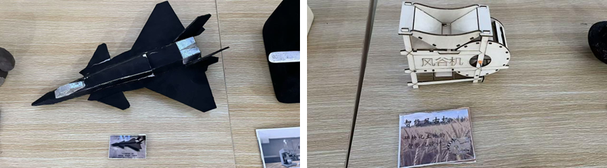 展览现场,作品种类丰富,形式多样,吸引了大量师生前来参观交流。一件件精心制作的模型展现了同学们在产品设计中的独特构思和创新表达。比如,有同学以石膏为材料,雕刻出精致的战机模型,棱角分明的造型让人仿佛感受到战机强大的气场;还有同学创作了“风谷机”模型,其简洁流畅的机身线条融合了现代科技与信息时代的元素,展现了极具朋克风格的独特魅力;另外,环保小夜灯、坐姿检测机器人以及自闭儿童交流玩具等作品则突出了同学们对环保材料的创新运用和对社会需求的敏锐洞察。