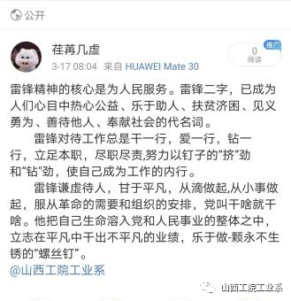 为了贯彻落实雷锋精神,学习雷锋先进事迹,倡导文明新风,建设美好文明校园。我系特此展开了学雷锋微博打卡活动。