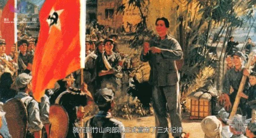 图1:毛泽东同志在荆竹山向部队宣读三大纪律