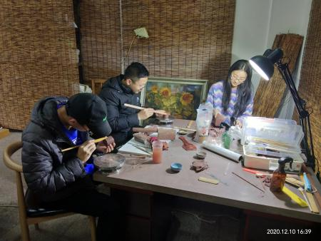 3.积极开展师资培训。选派一名青年教师外出攻读设计专业博士学位;选派六名教师进行了紫砂制作工艺培训;选派四名教师下企业实践锻炼。积极开展双师型教师教师队伍建设。组织六名教师申报“工艺美术师”职称,现已通过待领证书,为下一步产学研及教学工作做好准备。