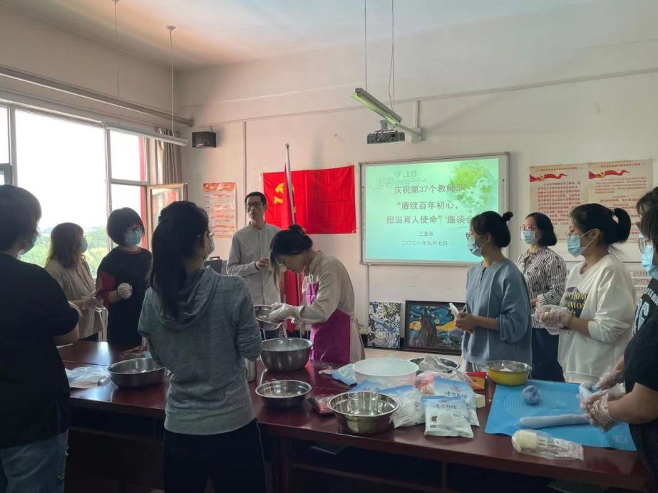 在第37个教师节及传统佳节“中秋节”来临之际,为营造温暖、和谐、团结、向上的氛围,工业系于9月7日举办了“赓续百年初心 担当育人使命”迎两节座谈会暨月饼制作活动。本次活动在工业系党群活动室,行知楼624室举行,由郗改联副书记主持,全系教师和学生代表20多人参加。