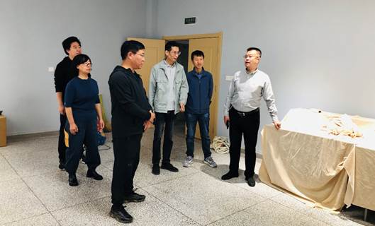 9月25日上午,ac米兰官方网站党委副书记、院长姜俊兵,党委委员、副院长叶玉刚一行前往艺术与设计科学系,视察新办公环境建设。艺术与设计科学系党总支书记刘小军、系主任杨敏与全系中层干部陪同。