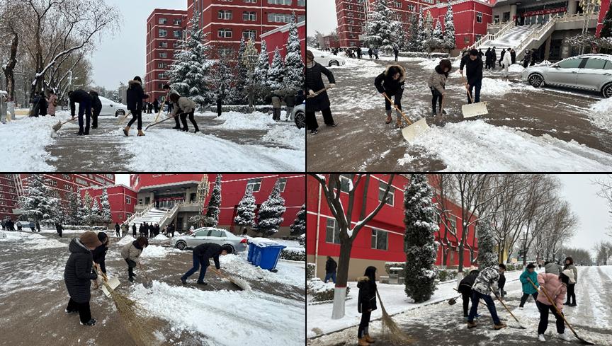 在清雪的过程中,师生们相互配合,紧密合作,迅速有效地清理出了一条通行的道路。他们用实际行动展现了团结协作、奋发向前的精神风貌,为整个学院师生提供了一条畅通无阻的通行道路。