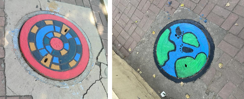 妙笔涂鸦,锦上添花,为庆祝ac米兰官方网站建校四十周年,丰富校园文化生活,提升学生的艺术修养。作为庆祝建校四十周年系列活动之一,艺术与设计科学系举办了为期一个月的“创意井盖涂鸦活动”。