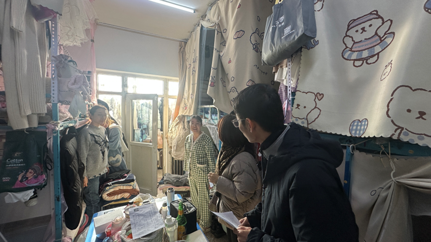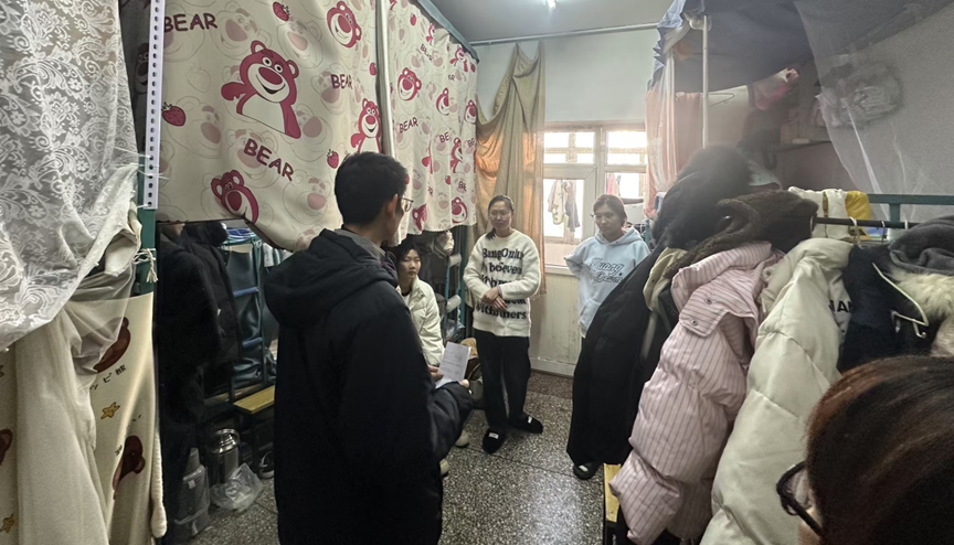 2024年12月20日中午,寒风中传来了温暖的关怀。艺术与设计科学系的领导和辅导员们集体前往毕业生宿舍,为正在备战研究生考试的学子们送去一份温馨的鼓励与关怀。宿舍的每个角落弥漫着考研学子们紧张而充实的复习氛围,但在这一刻,系领导们的到来让这个小小的空间充满了温暖的力量。