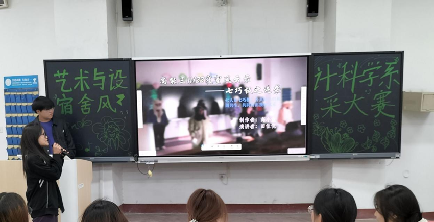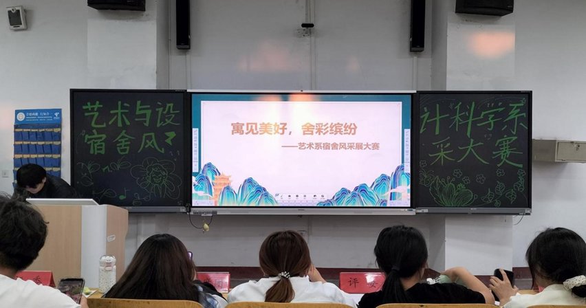 2025年5月11日晚7点,艺术与设计科学系举办的“宿舍风采大赛”在致学楼201教室举行。活动以“寓见美好,舍彩缤纷”为主题,通过宿舍风采展示、趣味游戏互动及颁奖仪式等环节,呈现了一场融合创意与团队协作的校园文化盛宴。