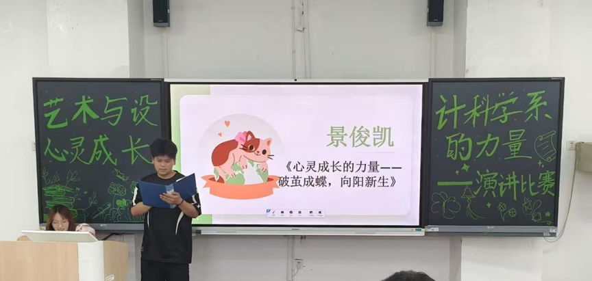 5月16日下午,艺术与设计科学系“心灵成长力量”演讲预选赛在致学楼202教室隆重开幕。活动以“破茧成蝶,向阳新生”为主题,通过演讲与艺术表演的形式,展现了当代青年对心灵成长的深刻思考。